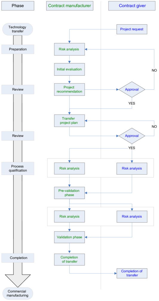 The transfer of a product to a contract manufacturer can be divided into different phases.
