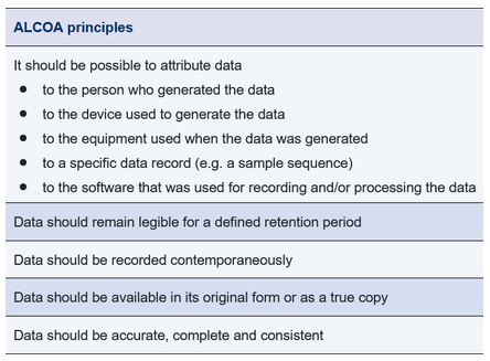 All of this data should comply with the ALCOA principles – and, in an ideal situation, the ALCOA plus principles.