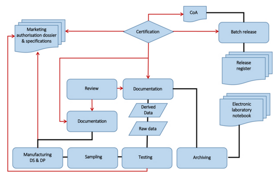 A HPLC laboratory for pharmaceutical quality control is used as an example in which data for the batch release of a finished medicinal product is generated. A schematic representation of the underlying process is shown in Figure 1.