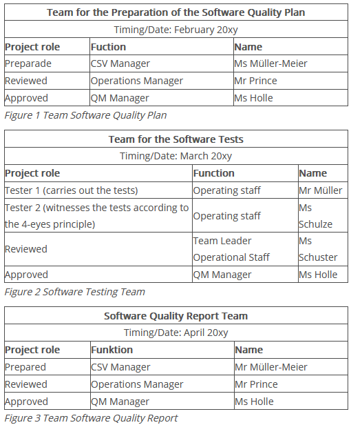 A software quality plan and a software quality report are written by one person who is only involved in writing the plan or report. Another person will carry out the tests. These two functions must be kept separate. A software quality plan does not only assume that the tests can be positive (“software works as desired“). A possible negative outcome (“software does not work as desired“) must also be considered in the plan.