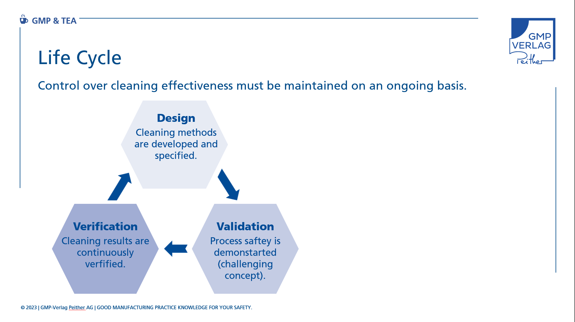 This type of continuous verification does not end with the revalidation of individual confirmation batches, but requires a control system that continuously provides data on the effectiveness of the cleaning process.
