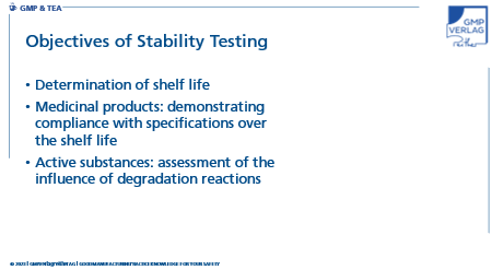 Stability tests are used to determine the shelf life of active substances and medicinal products. In the case of the latter, they are specifically used to demonstrate that they meet the defined specifications over the shelf life. In stability testing of active substances, degradation reactions are of particular interest in order to better assess their influence on the drug formulations.