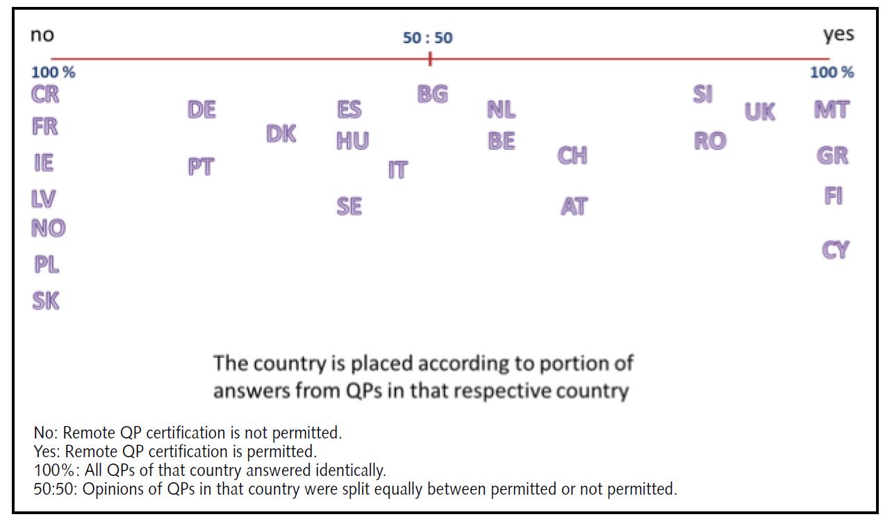 The survey, responded to by more than 300 QPs, revealed an interesting pattern of approaches. As would be expected, the responses reflected the perceived expectations of their respective national authorities and/or their understanding of national law. QPs acting in a generally acceptive environment for remote QP certification were much better equipped to answer the questions posed in the survey than those who believed that their national law would not allow it.