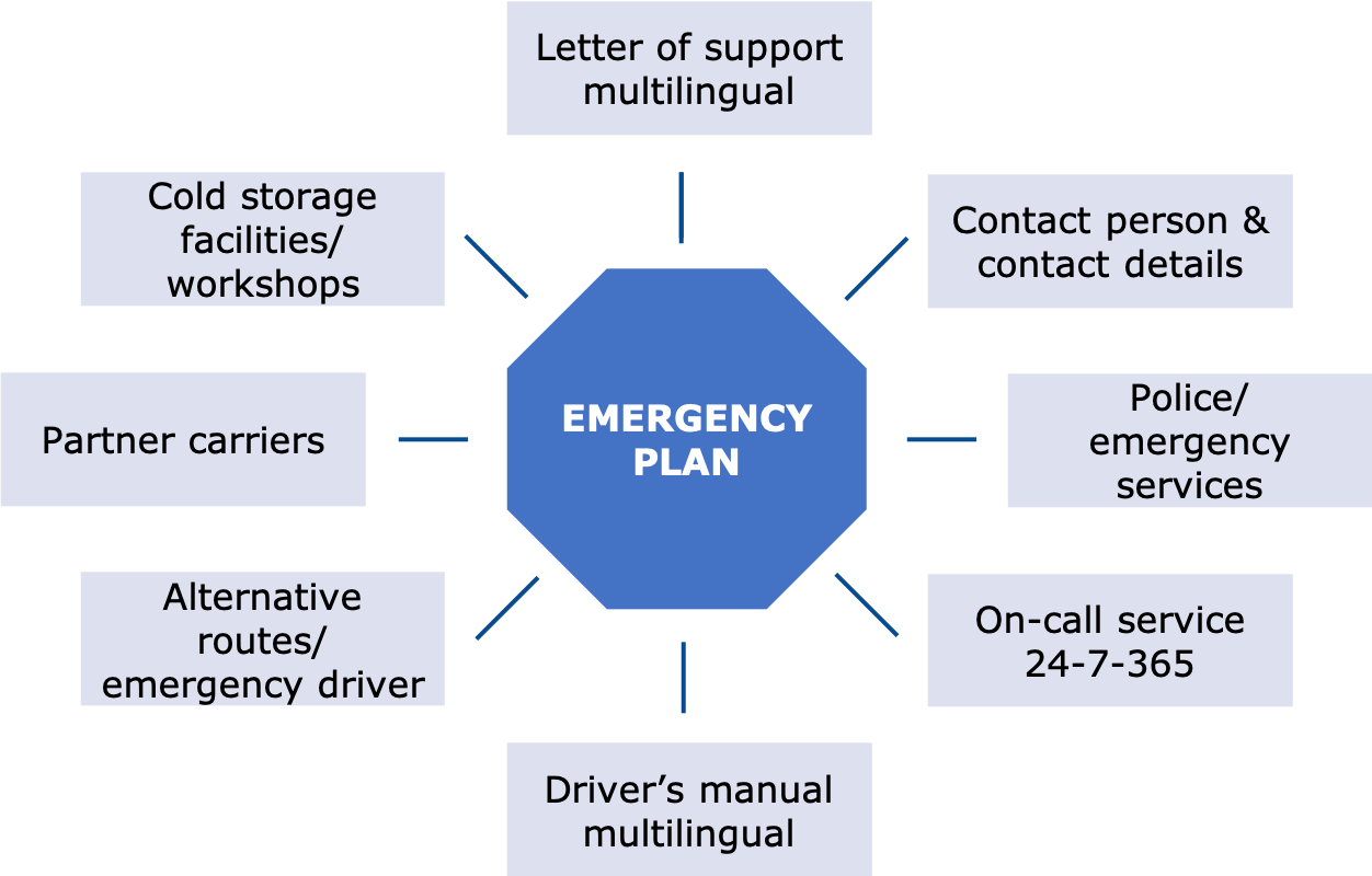 Actually, it is human to prefer to ignore the possible occurrence of emergencies and live according to the motto: "It will be alright!“ In the context of pharmaceutical logistics, however, it is important to think about such incidents and to have an intensive exchange of information with the service provider about emergency scenarios and emergency plans. Many damages could have been avoided or at least would not have ended in a total loss if correspondingly effective emergency procedures had been established and tested. The plans are not only to be stored in the joint documentation (SOP), but are also to be made available to the driver in the form of a leaflet or app with the consignment. This closes the circle of the close cooperation with the service provider already described above.