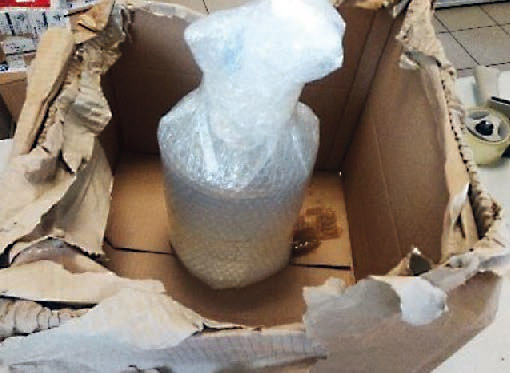 Quickly take the carton from the shelf, insert the polystyrene sheets and put the dry ice on top. Afterwards everything is well glued and the shipping label is stuck on the box. Ready for dispatch - or not?