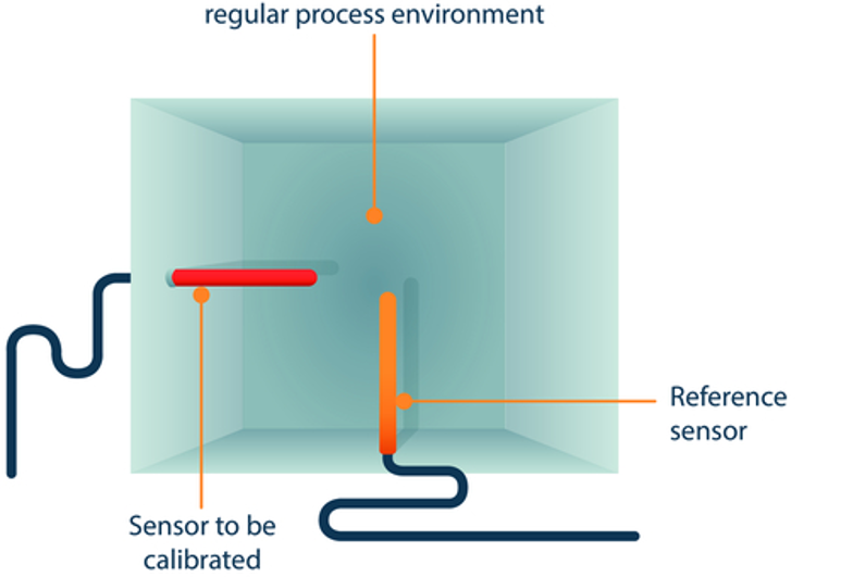 A comparative measurement is recommended in cases where it is not possible to remove a sensor from its location in the process or if the recording of the parameters of the running process should not be interrupted for calibration.
