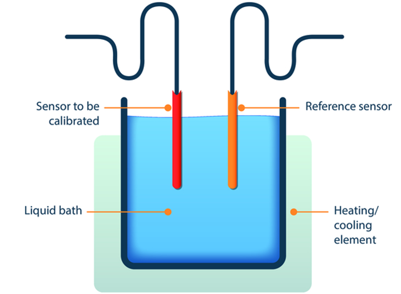 An example of such auxiliary equipment is a tempered water bath. The temperature probe of the device being calibrated and the higher precision reference probe are both inserted into the bath. The probes are “exposed” to various calibration points by varying the temperature of the liquid (heating and cooling).