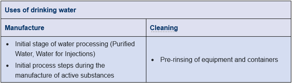 Figure 2 Uses of drinking water in the pharmaceutical industry.