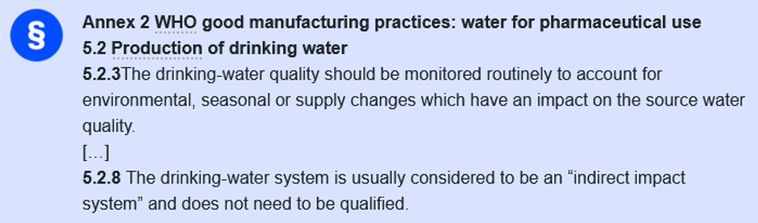 Excerpt from the GMP Compliance Adviser, Chapter 5.A.2: Drinking water as source water