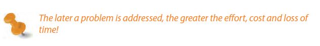 - At regular intervals, the results are compared and evaluated to determine if there are trends or high occurrences of problems (review, trending). If this is the case, the work processes and specifications must be improved before a quality error occurs (continual improvement process, CIP).