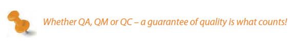 The terms quality control (QC), quality assurance (QA), quality management (QM) and quality management system (QMS) are frequently not sufficiently differentiated in daily use. Unfortunately, there are no clear differentiations or definitions in the legislation. Therefore, it is advisable to define these terms within a company and use them consistently. Any person who works with contractors should ask twice when something is not clear to avoid misunderstanding!