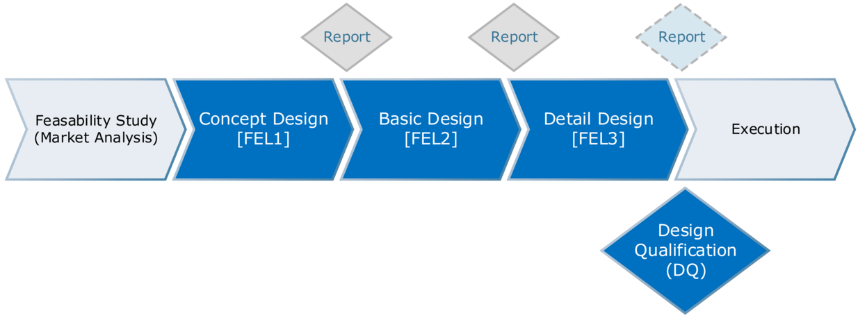 The design qualification process may vary depending on the project and the client's requirements and may be carried out in two or three design phases.