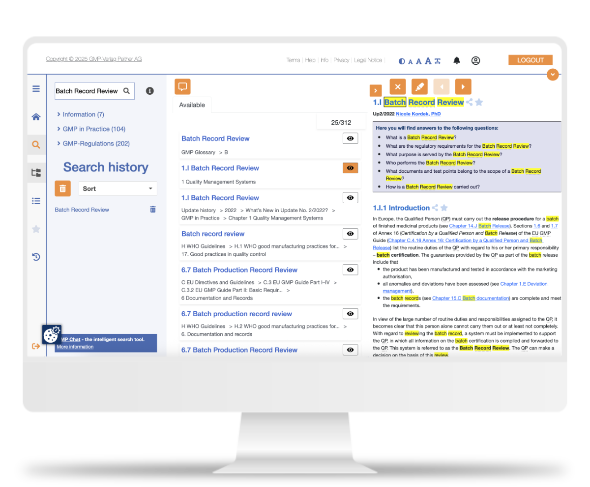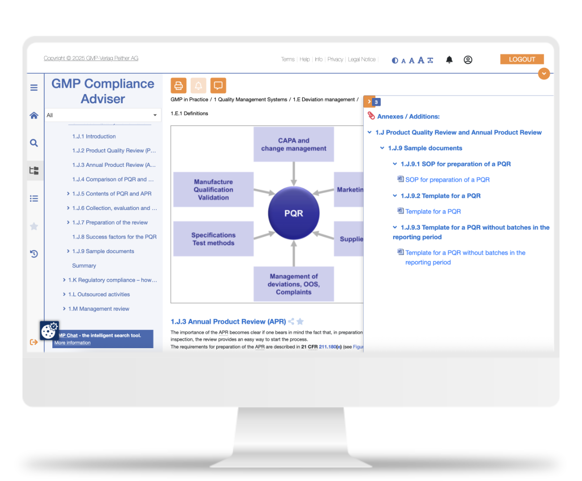 In addition, the GMP Compliance Adviser contains many sample documents and practical examples that you can use.